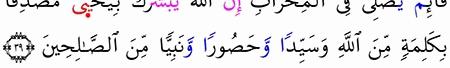الآية رقم {39} من سورة ( آل عمران)