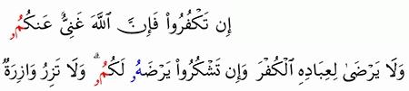 الآية رقم {7} من سورة ( الزمر)