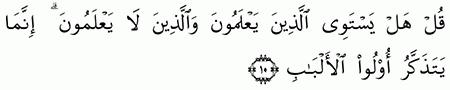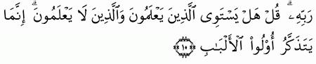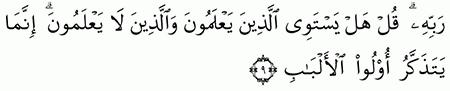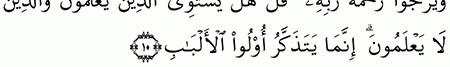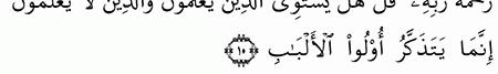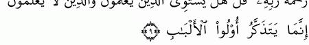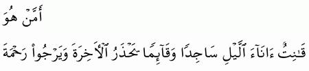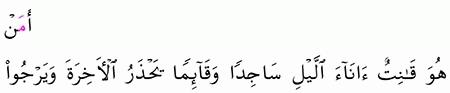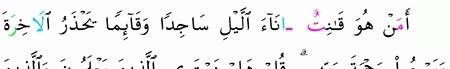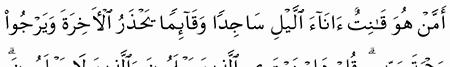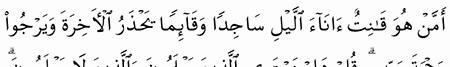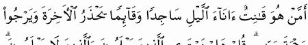 الآية رقم {9} من سورة ( الزمر)